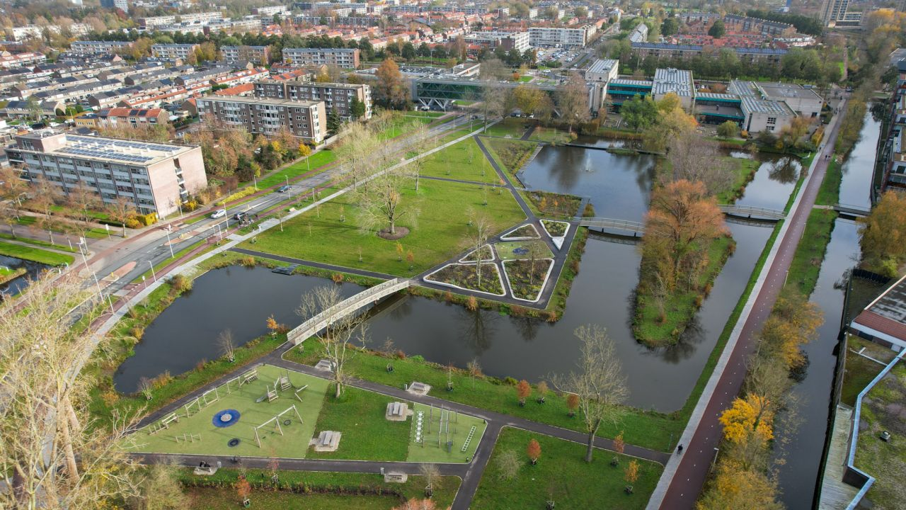 Waar het eerder een nat park was, is het nu een groenrijke omgeving voor sport, activiteiten, spelen en honden met hun baasje.