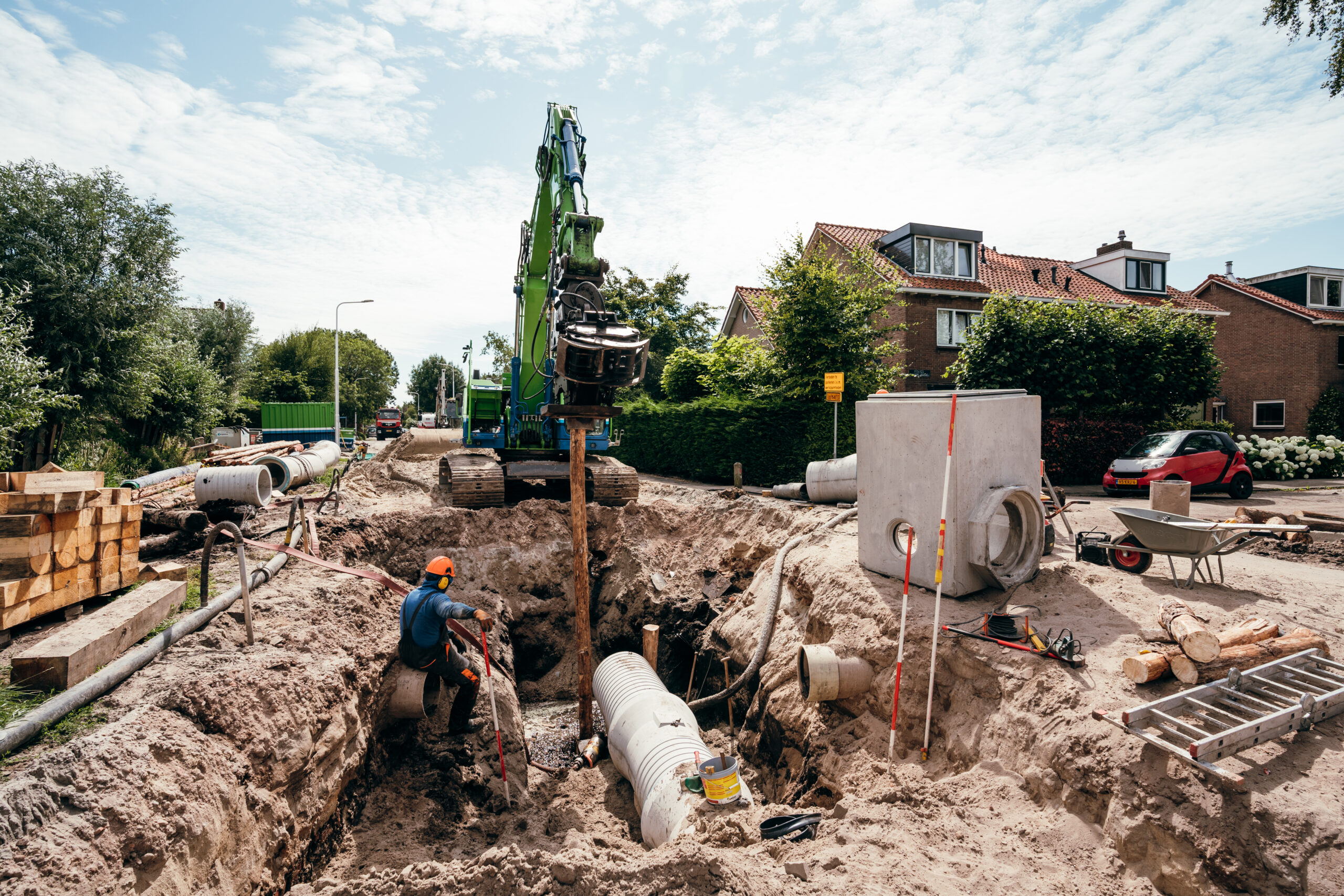 Vervangen of verbeteren van rioleringenReconstructies gaan vaak samen met werk aan de riolering. Wij vervangen en verbeteren riolen, ook in slappe grond. Dat doen we met systemen op staal of onderheid, inclusief huisaansluitingen en koppelingen op het bestaande stelsel. Alles wat we uitvoeren leggen we vast met revisiemetingen. Zo houd jij volledig inzicht en klopt de administratie vanaf dag één.